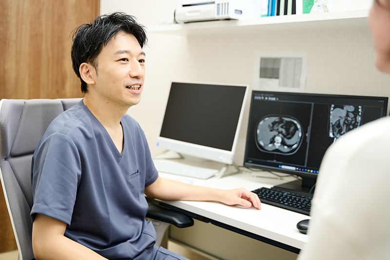 検査結果はモニターに映し出された画像を医師と一緒に確認しながらご説明いたします。結果によっては、経過観察で様子をみる場合や治療の開始、必要に応じて専門医療機関へのご紹介など、患者様ごとに異なる対応となります。